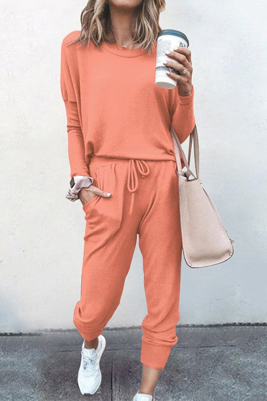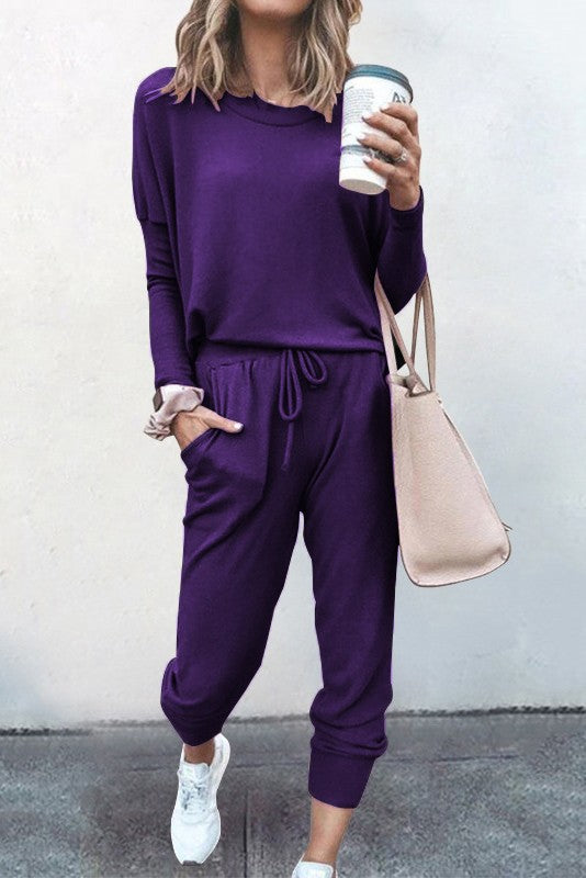 2 Pcs Loose Solid Color Long Sleeved Casual Set