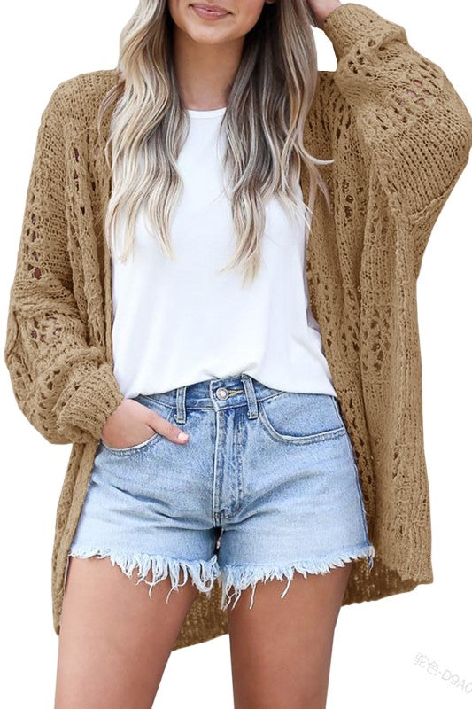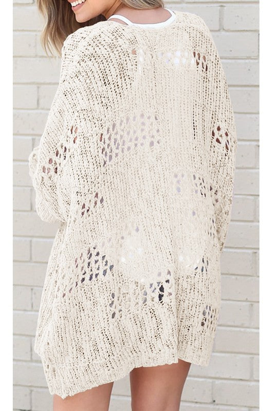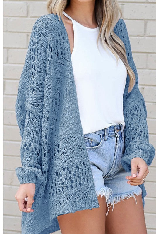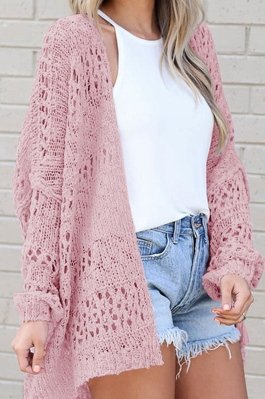 Crochet Knit Drop Shoulder Open Front Cardigan