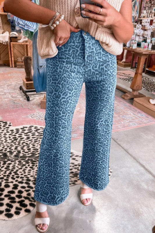 Embrace a wild yet stylish look with these Leopard High Waist Frayed Hem Jeans, adding a touch of vintage charm to your outfit.