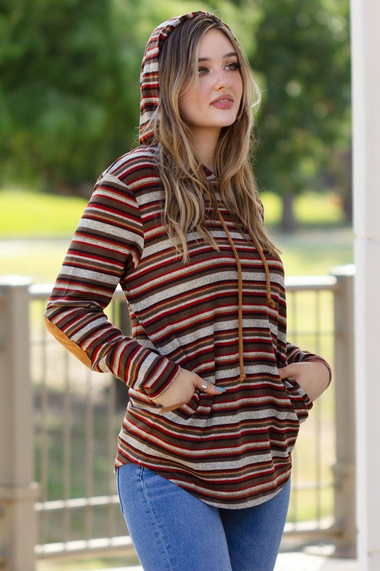 Striped Hoodie With Elbow Patches And Pockets