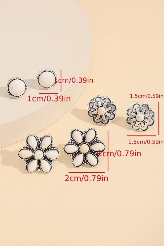 Turquoise adds a western vibe to the earrings Studded style for a secure and comfortable daily wear 3 pairs in one set make it easy to match with different outfits Made of high quality and lightweight alloy material