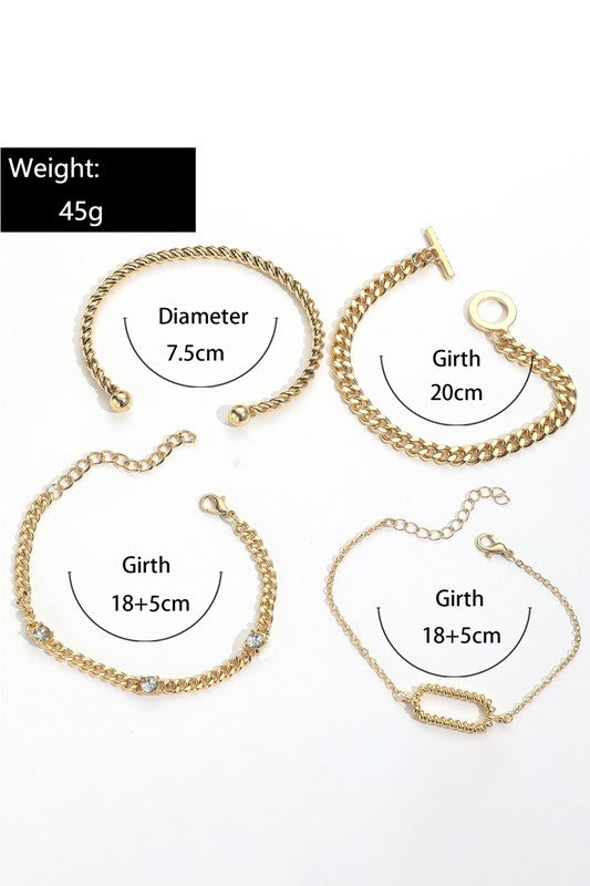 Rhinestone Decor Twist Adjustable Chain Bracelets