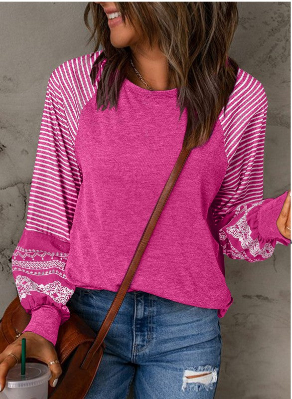 Stand out in style with our this top, featuring a unique combination of colors and patterns to elevate your look effortlessly. Stay comfortable all day long in this loose-fitting top, perfect for a casual day out or a cozy night in. The raglan sleeves add a sporty touch to this chic top, creating a fashionable contrast with the striped design for a modern and trendy outfit choice. Crafted from high-quality materials, this top is durable and easy to care for.