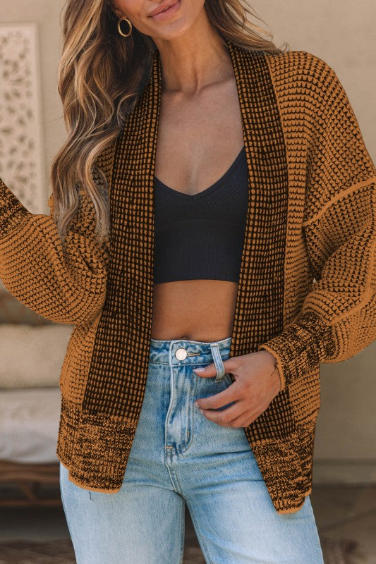Chunky Knit Pockets Drop Sleeve Cardigan