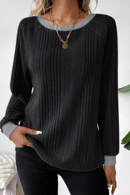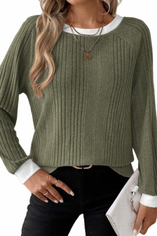 Color Block Ribbed Long Sleeve Top