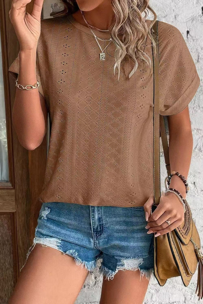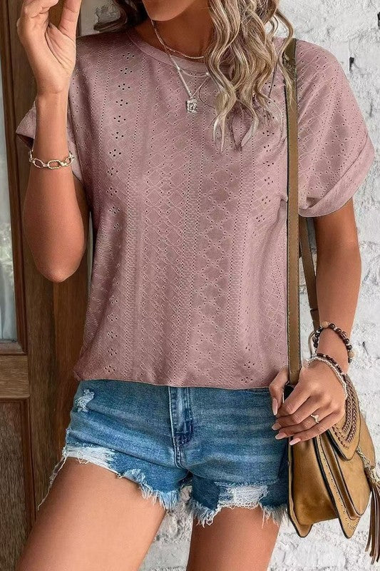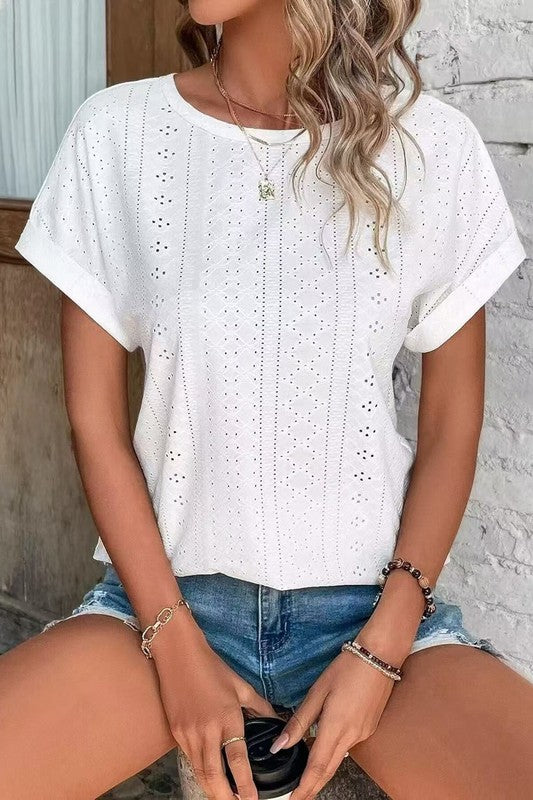Soft Cotton Eyelet Fabric: Made from breathable cotton with subtle stretch, this top features all-over broderie eyelet detailing for a breezy, lightweight feel.